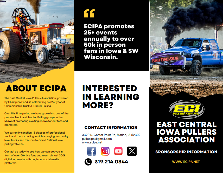 The East Central Iowa Pulling Association is Iowa’s PREMIER regional truck & tractor pulling circuit for over 30 years!